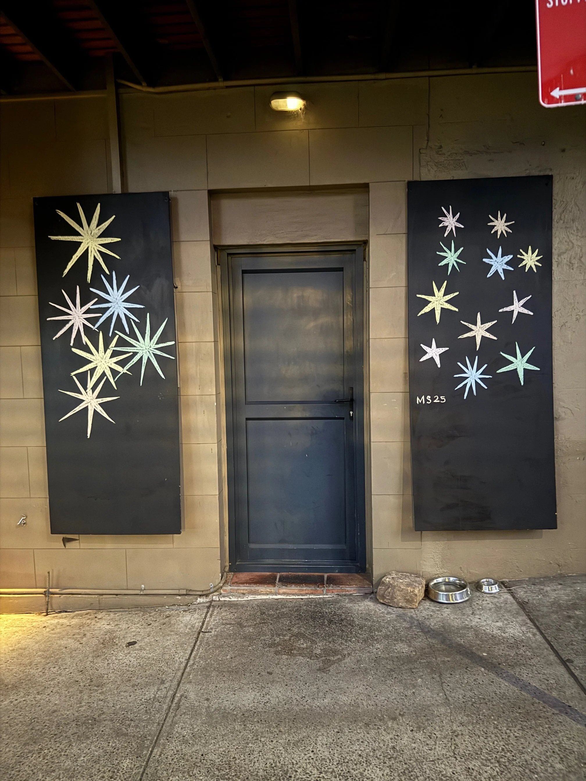 Where two ‘Uniques’ worked side by side in the earlier blackboard (August 21, 2025) to make the best use of the given space, this new ‘starburst’ takes that further by making the separated ‘canvasses’ a unified work.